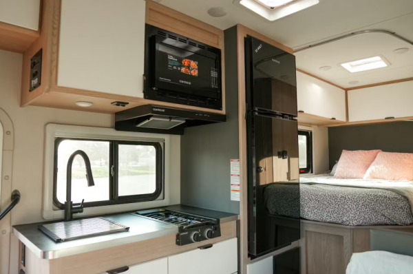| Description | The Comfort Standard Select offers the same trusted design and features, now available in a newer model with more updated features and limited usage for an enhanced experience. The Comfort Standard Select is a fully equipped Class C motorhome that offers the comfort of home while you travel. With a spacious layout and thoughtful features, it is ideal for families or groups looking to explore the road in comfort. This model accommodates up to six people, providing sleeping space for four adults and two children, making it ideal for shared adventures. Sleeping arrangements include three double beds, giving everyone a dedicated space to rest and recharge after a day of exploring. The kitchen is fully equipped and ready for meal prep on the go. It features three gas hobs, a sink, a microwave, and a fridge, making it easy to cook and store food during your trip. The bathroom includes a washbasin, toilet, and a hot shower, offering the privacy and convenience you need to feel at home wherever you are. The living area features a dinette table, perfect for meals, games, or relaxing indoors. There is also a closet for storing clothes and essentials, along with rear exterior storage with a capacity of 7 gallons for additional gear and equipment. The Comfort Standard includes integrated heating and air conditioning to ensure a pleasant interior climate in all conditions. A generator is available as a bookable extra to power the air conditioning and electric outlets. Generator usage is charged at $3.50 per hour, monitored by a built-in running time meter. |